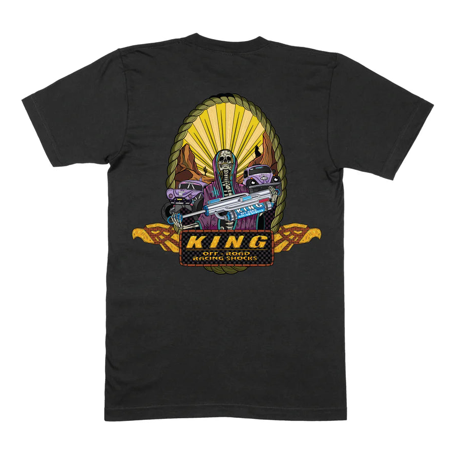 Shreddy teamed up with King Shocks 🔥 Check out the NEW men's collab. This black men's shirt is made from premium cotton for superior comfort and durability. Perfect for riding, chilling, or just repping the lifestyle.